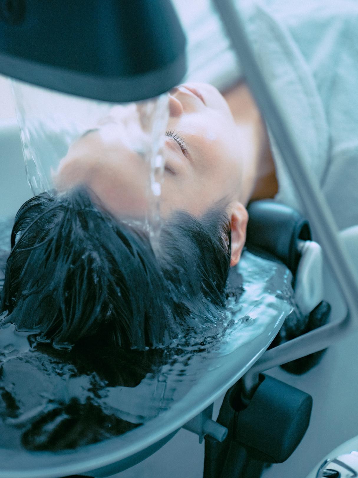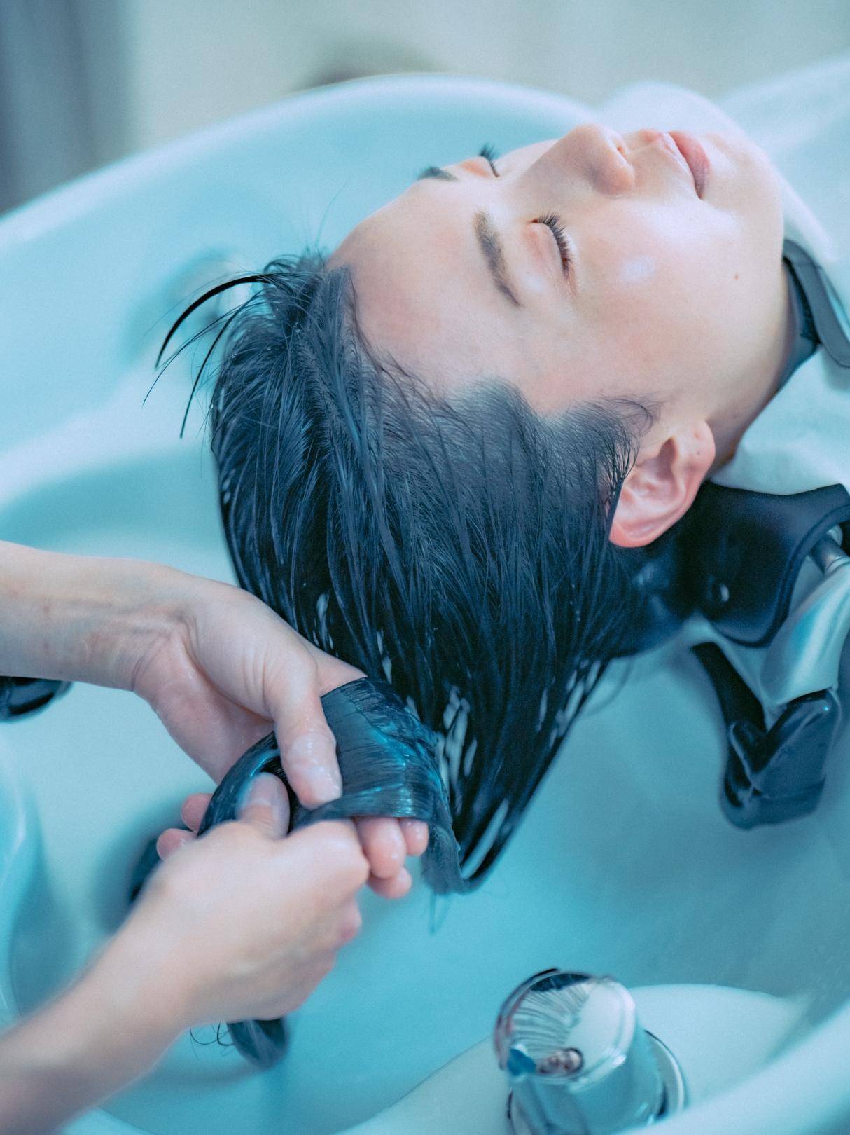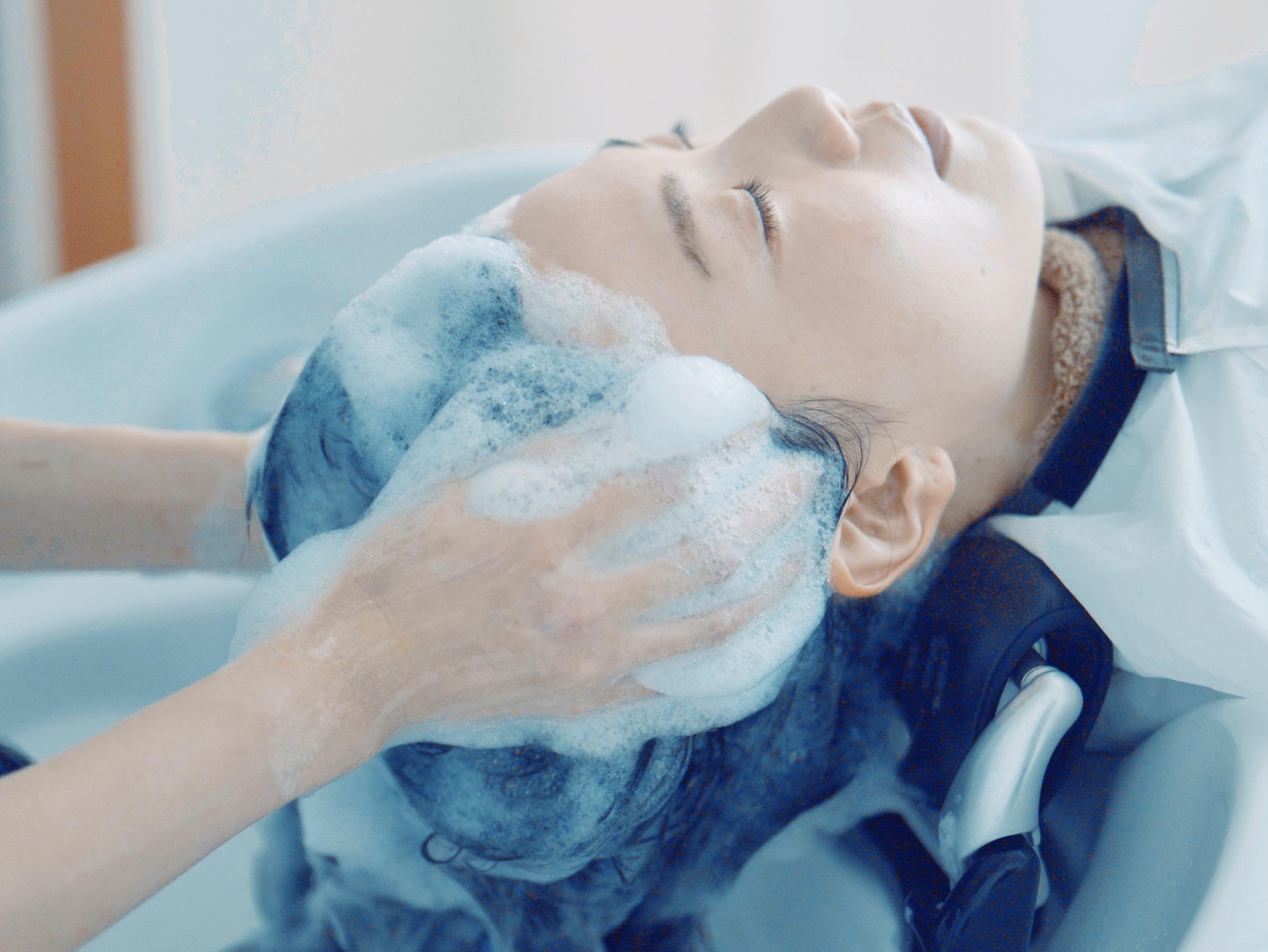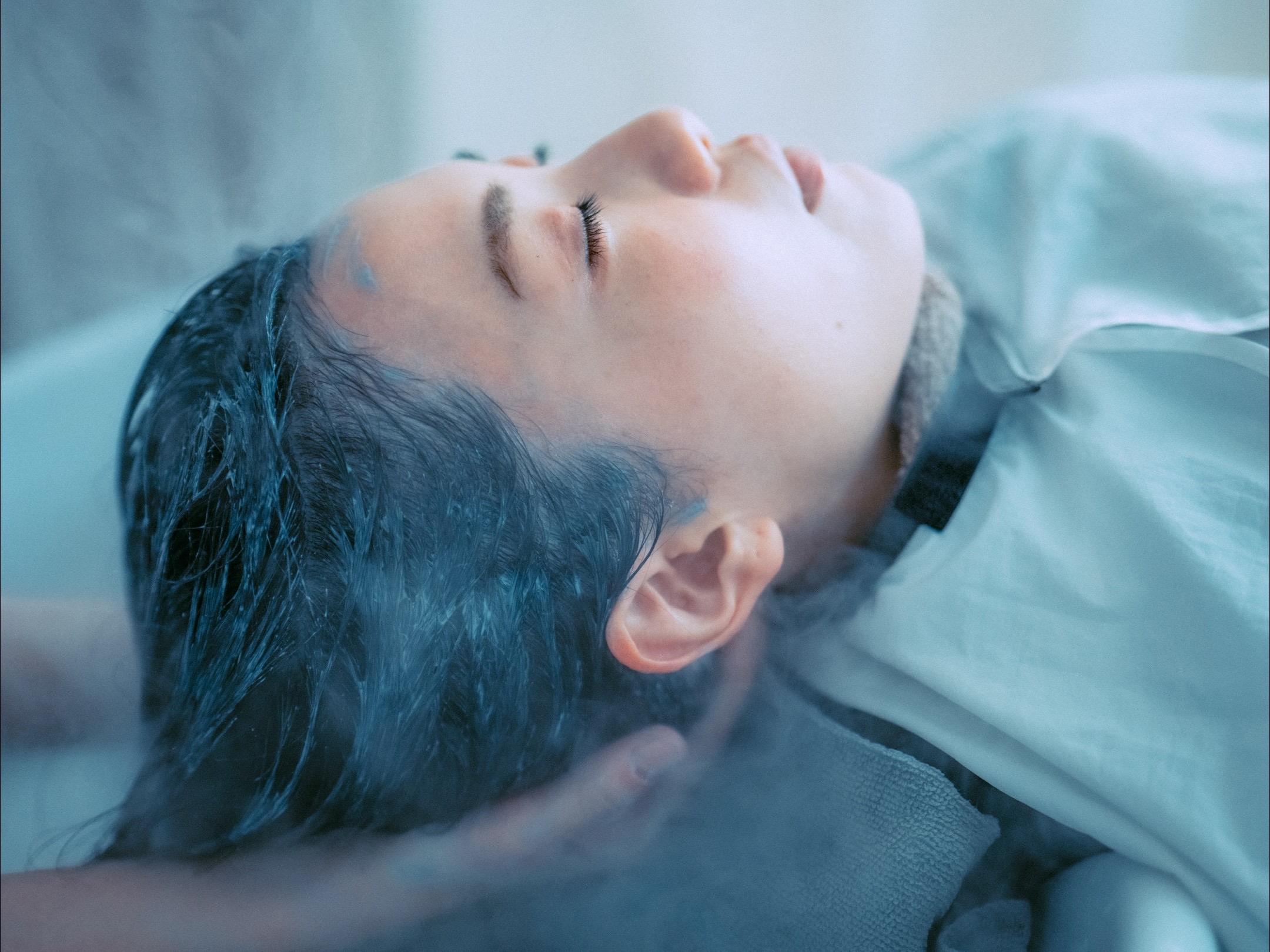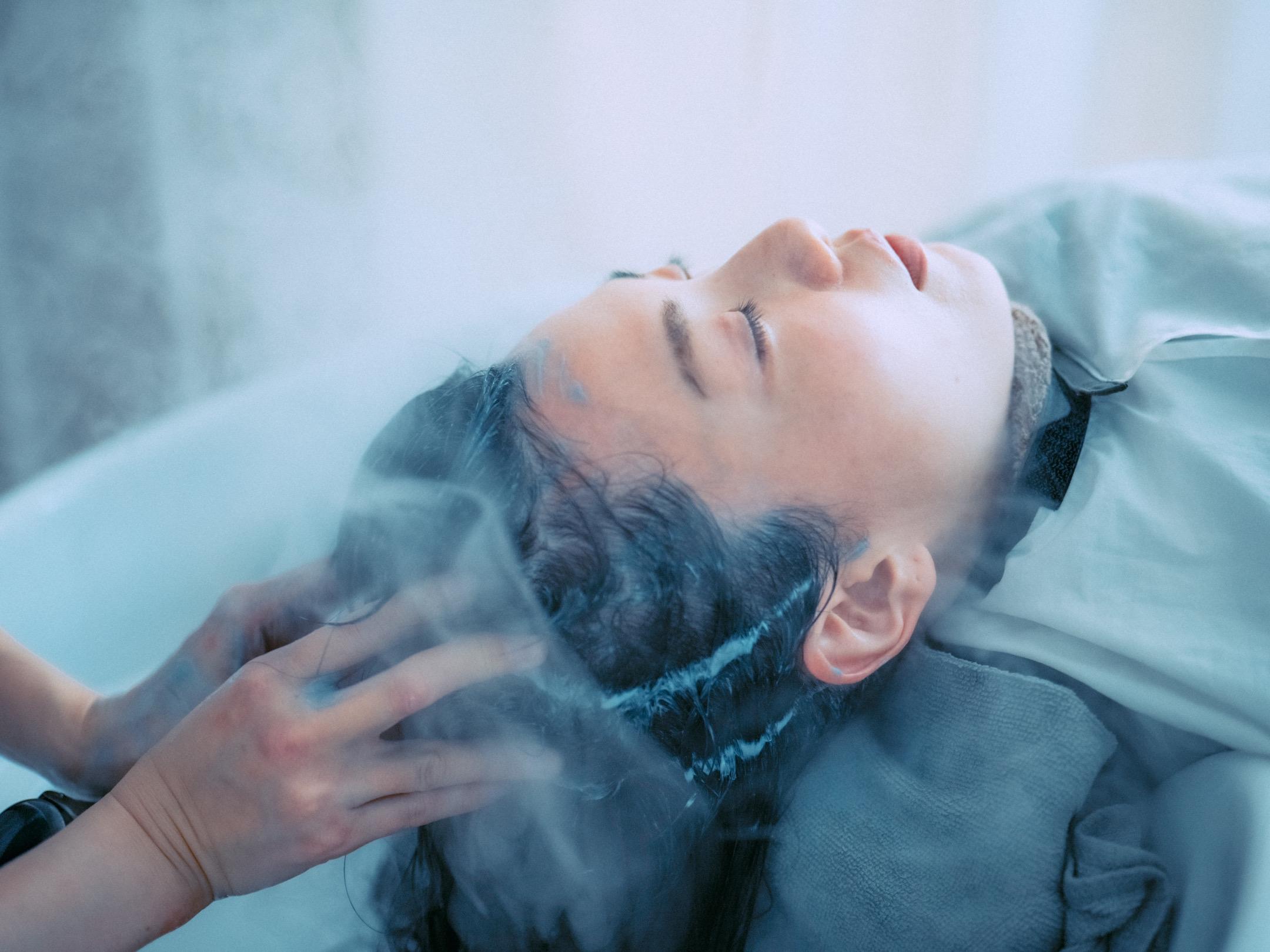 頭皮状態に合わせたプロダクツを選定。ウルトラファインバブル炭酸泉を掛け流す頭浸浴で血行促進をしながら、頭皮の毛穴詰まりや皮脂汚れなども除去し、髪の残留物までクレンジング。最後は丁寧に保湿し肌のターンオーバーを正常化、健康的な頭皮に導きます。