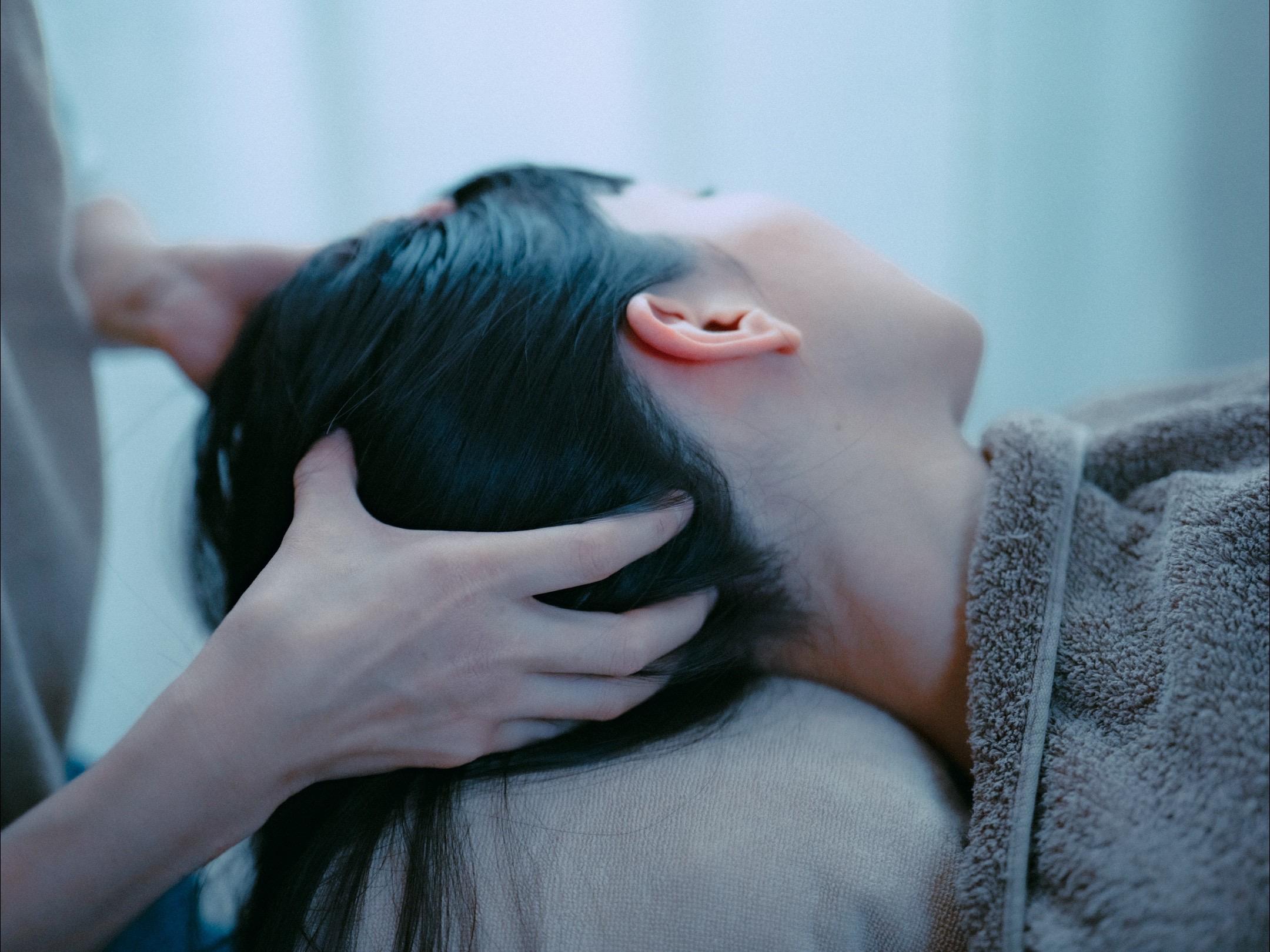 白髪ケアコース140分に10分のマッサージ延長をサービス。 年々増える白髪への不安を解消。 オールハンドでしっかりほぐし、頭浸浴で血行を促進しながら頭皮と髪をすっぴんに。仕上げは専用スカルプセラムで白髪ケア成分を頭皮の深部まで導入します。
