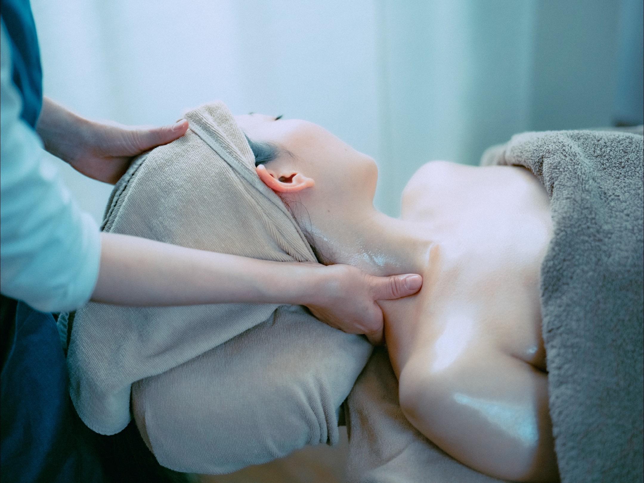 頭全体~首肩の隅々までほぐすヘッドスパと、デコルテ・背面・首肩オイルリンパマッサージで、コリだけでなく老廃物もしっかり流します。最後はヒト幹細胞培養ローションでエイジングケア。いつも頑張っているわたしを大切にしてあげる、スペシャルなコース。