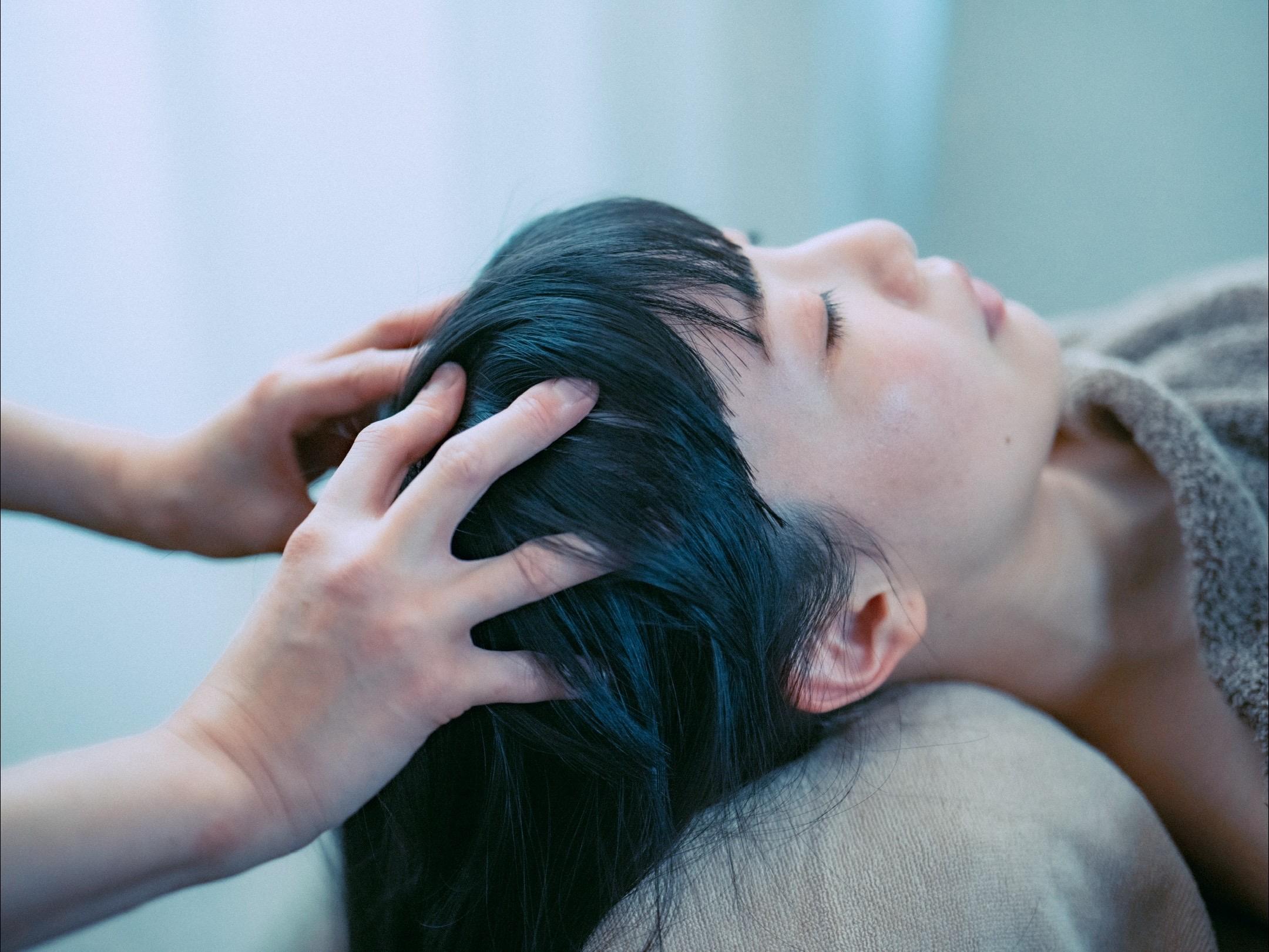 白髪ケアコース140分に10分のマッサージ延長をサービス。 年々増える白髪への不安を解消。 オールハンドでしっかりほぐし、頭浸浴で血行を促進しながら頭皮と髪をすっぴんに。仕上げは専用スカルプセラムで白髪ケア成分を頭皮の深部まで導入します。