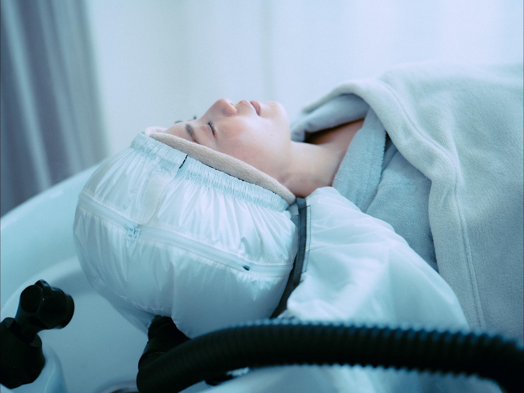 ウルトラファインバブル炭酸泉を掛け流す頭浸浴で、血行促進と汚れを徹底除去。95%の高濃度ヒト幹細胞をエレクトロポレーションで深部まで浸透させ、低周波~高周波の様々な電流を流すメディカルスパで、筋肉だけでなく神経・血管・リンパに働きかけます。